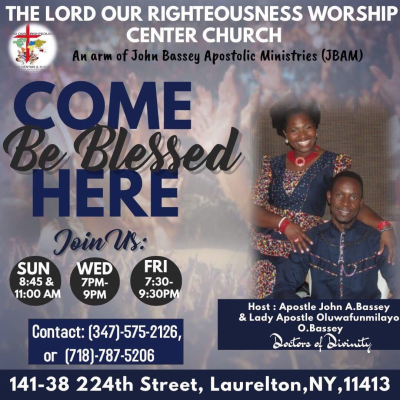 Dr. John A. Bassey, along with his beautiful and blessed wife, Dr. Oluwafunmilayo, are the founders and overseers of The Lord Our Righteousness Worship Center (LORWC), under the leadership of Jesus Christ who is the chief cornerstone. The church took off in Arverne, New York, USA and is now gaining more territories for the Kingdom of God. Apostle John A. Bassey is the author of these books - Discover Your Life, I Saw JESUS, So Can You, and In Pursuit of A Lasting Marriage.